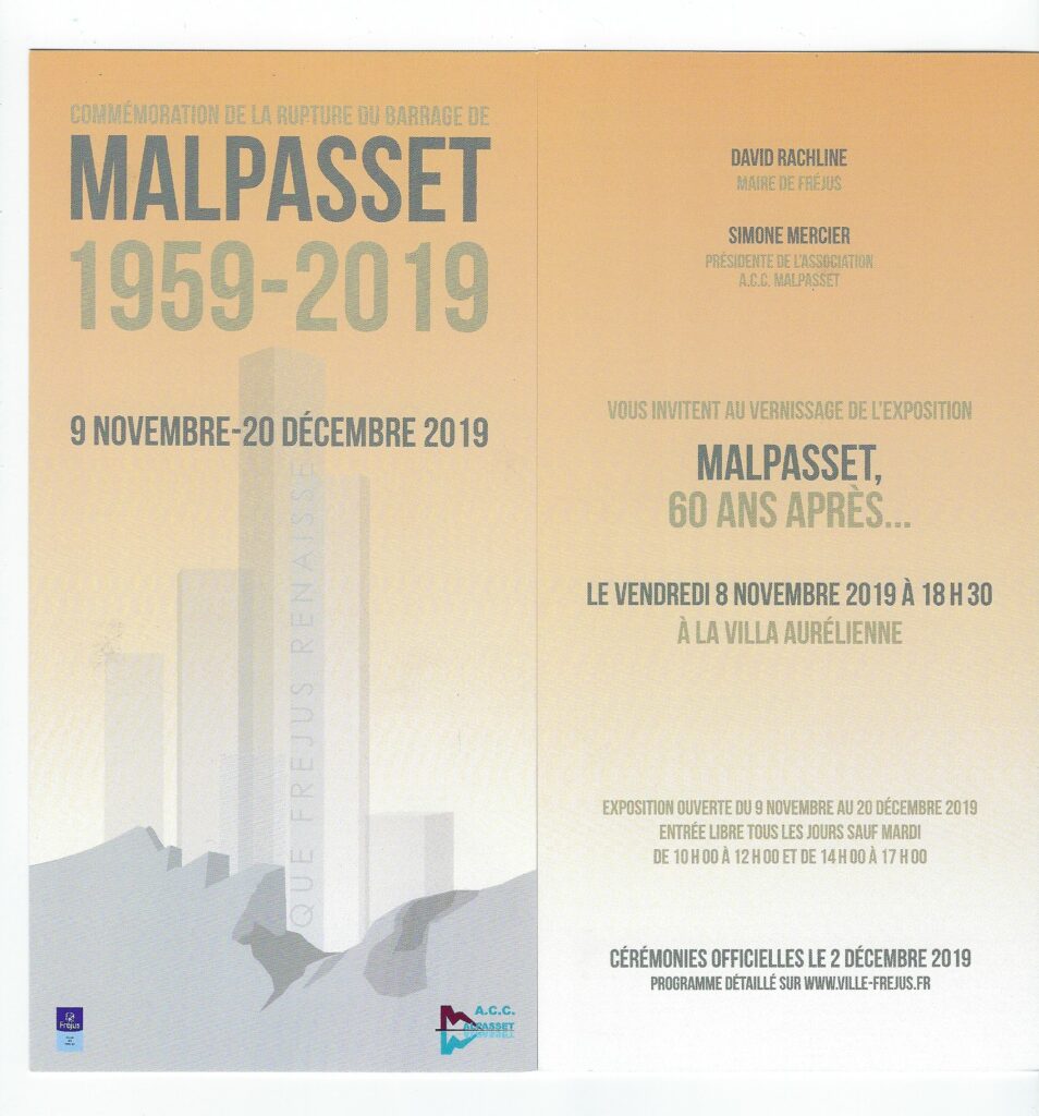 Commémoration de la rupture du Barrage de Malpasset à Fréjus le Dimanche 1er décembre 2019